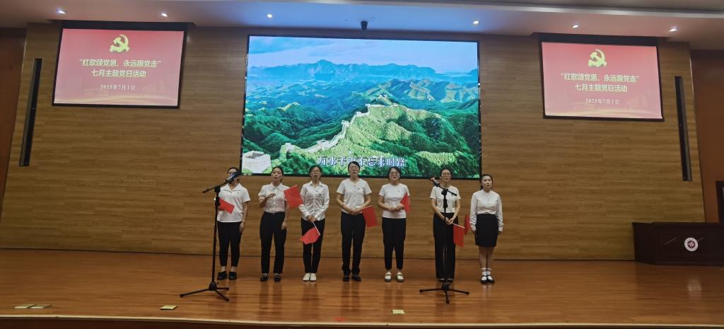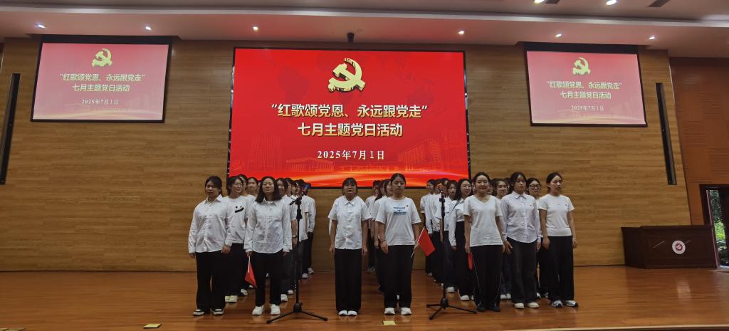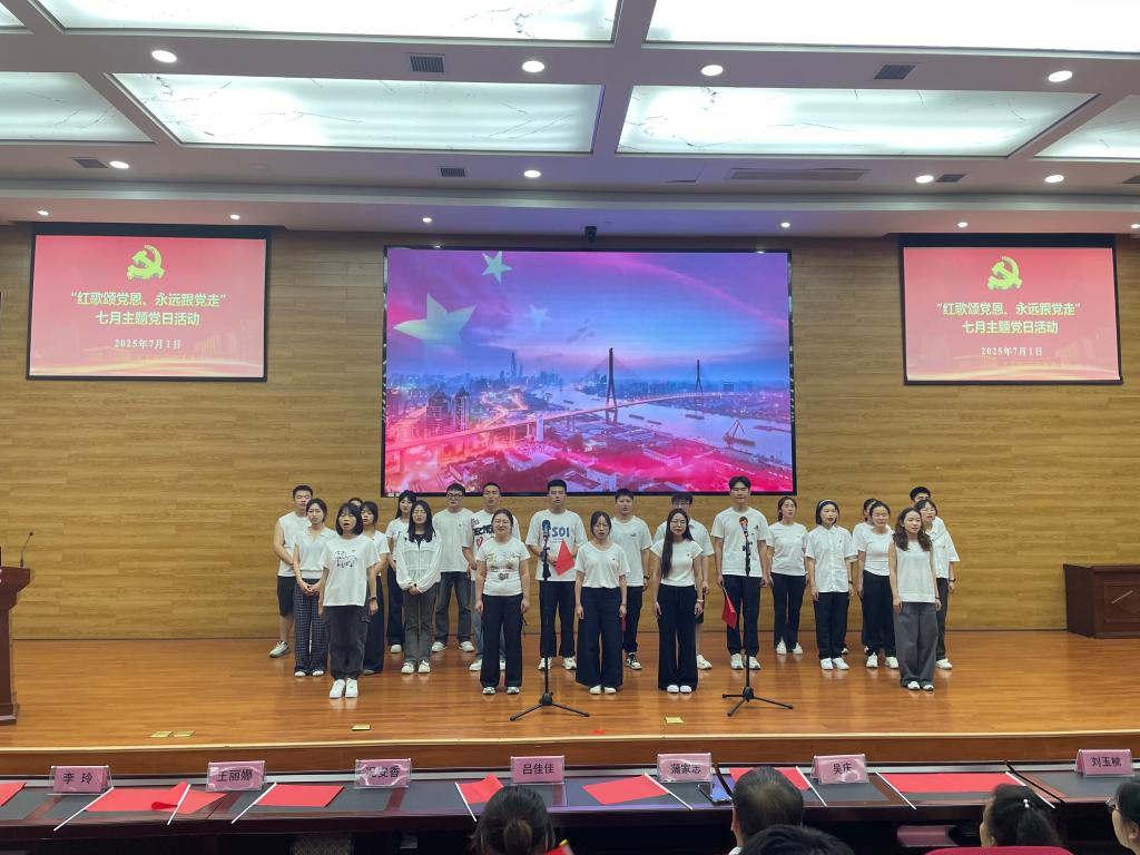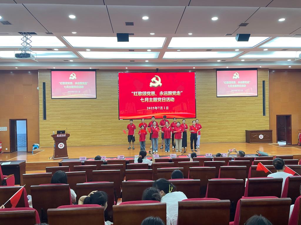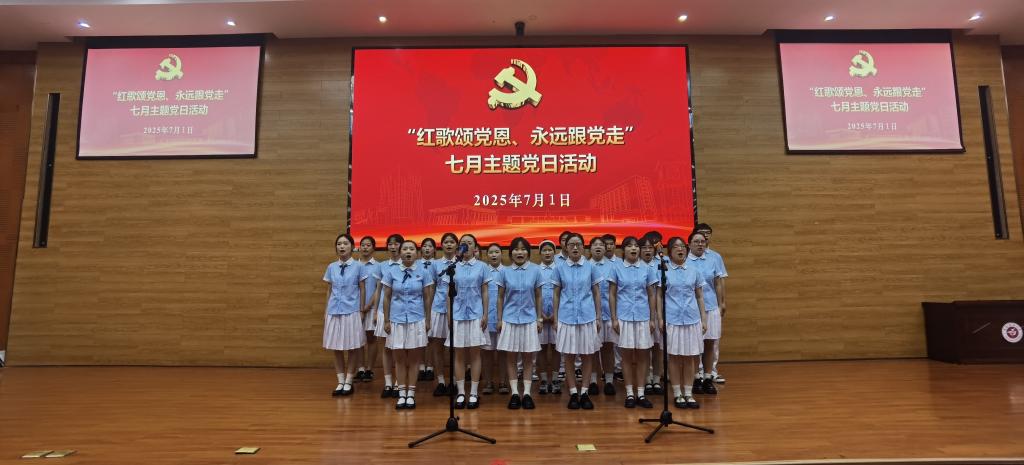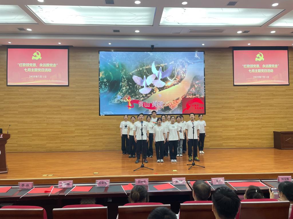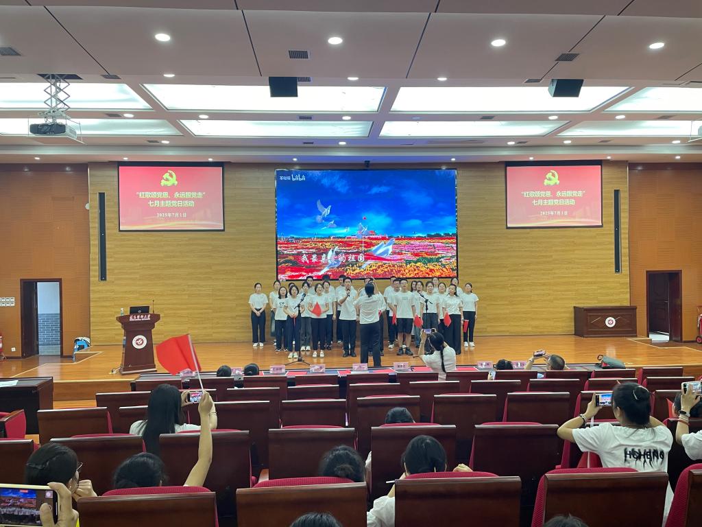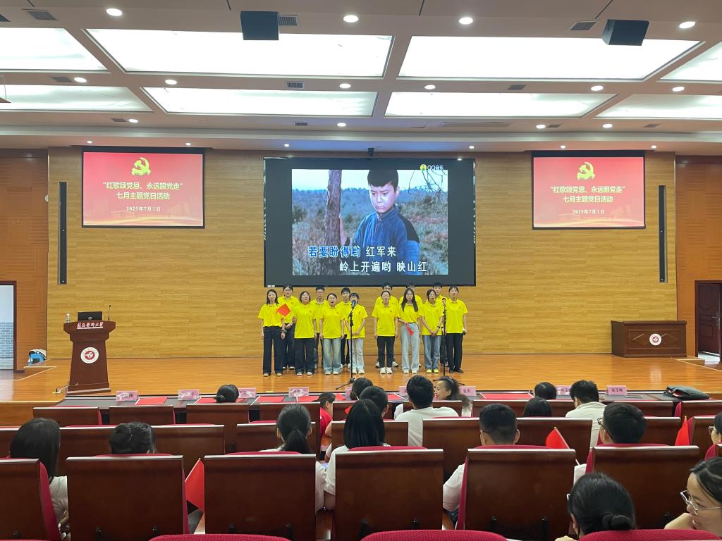 活动在齐唱中华人民共和国国歌中拉开帷幕,《打靶归来》《歌唱祖国》《映山红》《国家》《我和我的祖国》《不忘初心》等一首首耳熟能详的旋律,一句句充满力量的歌词,抒发了师生党员对党的无限忠诚和对祖国的深深热爱。