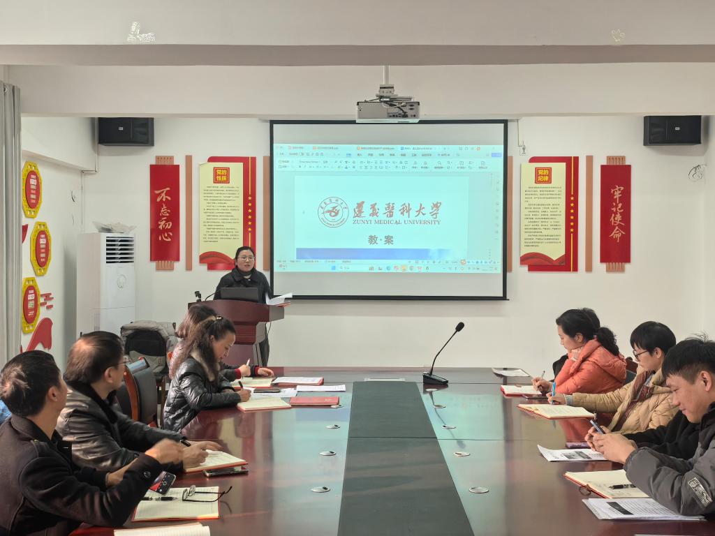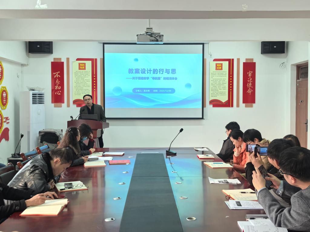 在政治及教育教学相关文件学习后,吴庆以《中国共产党思想政治工作条例》为题,并结合教育教学实际,系统阐释了《条例》的核心要义与实践要求,强调教师要自觉将思想政治工作贯穿教学全过程,筑牢育人思想根基。五位教师先后分享了优秀教案设计的思路与经验,从教学目标设定、内容组织、方法创新等方面进行了生动展示,为教案设计提供了有益借鉴。