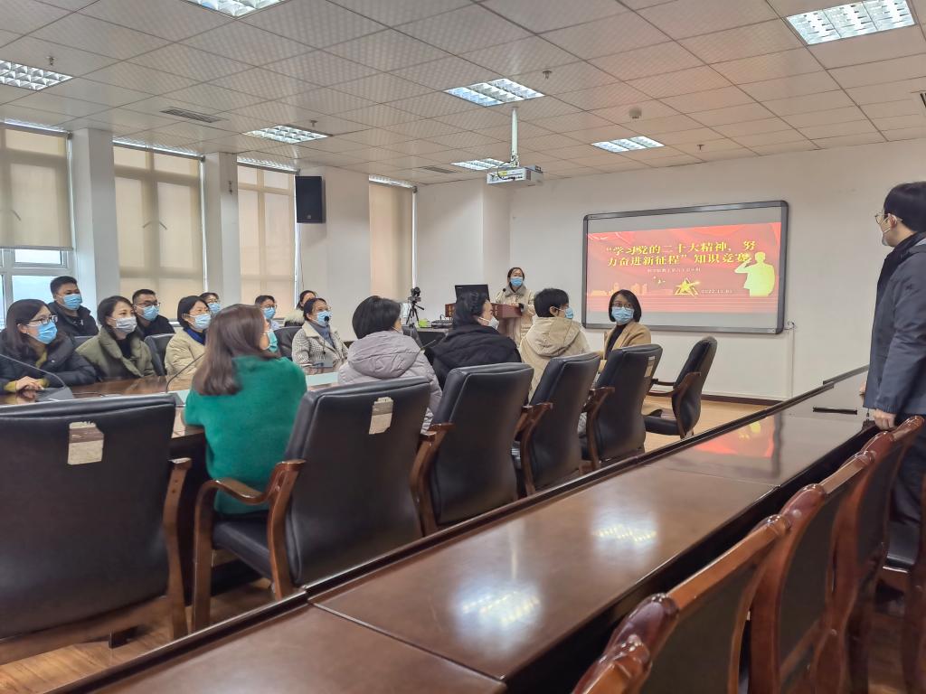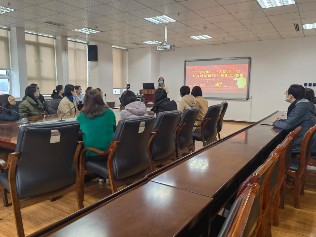 为深入学习宣传贯彻党的二十大精神,必赢教工第六工会小组于12月1日上午,在综合实验楼9楼会议室开展了“学习党的二十大精神,努力奋进新征程”知识竞赛活动。活动由教工第六党支部书记聂晶主持,第六工会无课教工参加了本次活动。