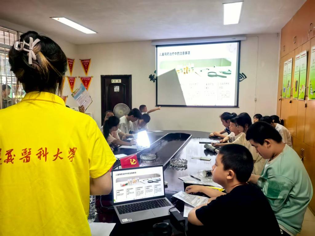 在杜艺玫、况安香两位指导老师带领下,18名必赢nn699net本科生组成的实践团队紧扣“服务”主题,精心设计“科普+实践”公益服务模式,14日通过图文展板系统讲解药品分类、药品批准文号识别及合理用药时间等核心知识,以微型讲座聚焦“生病该不该吃药”“警惕过期药品危害”等话题,破解日常用药盲区,并于15日走进乡村/社区家庭,以问卷调查从“家庭用药安全”“老年人用药安全”“儿童用药安全”三个维度深入了解家乡用药安全现状。实践团队坚持问题导向,针对重点人群开展精准服务,16日设立“夕阳红”专场,深入社区及家庭为老年群体宣讲慢性病安全用药原则,分发定制化宣传材料,减少多重用药与剂量错误风险,17日开展“小幼苗”专场,面向儿童家庭普及“儿童用药无小事”理念。活动核心环节聚焦家庭药箱科学管理,团队成员连续两天上门,协助居民家庭整理药品、优化存储环境、标注有效期,杜绝过期药隐患,培养家庭“用药明白人”,推动科普成效长效化。实践尾声,团队将七日活动核心知识点、常见误区解析及实用贴士汇编成《家乡安全用药指南》,为当地居民提供便捷参考。正值暑期,同学们还积极参与社区/乡村防溺水消防安全宣传,走入家庭播放防溺水宣传片。