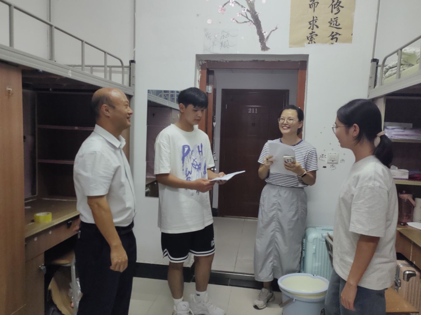 9月1日晚,袁泽利带队走访新生宿舍,为新生带去学院的关心关怀和鼓励。
