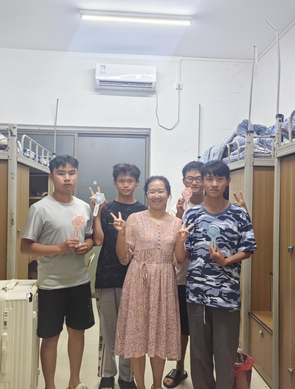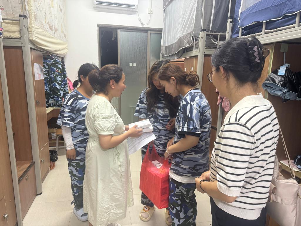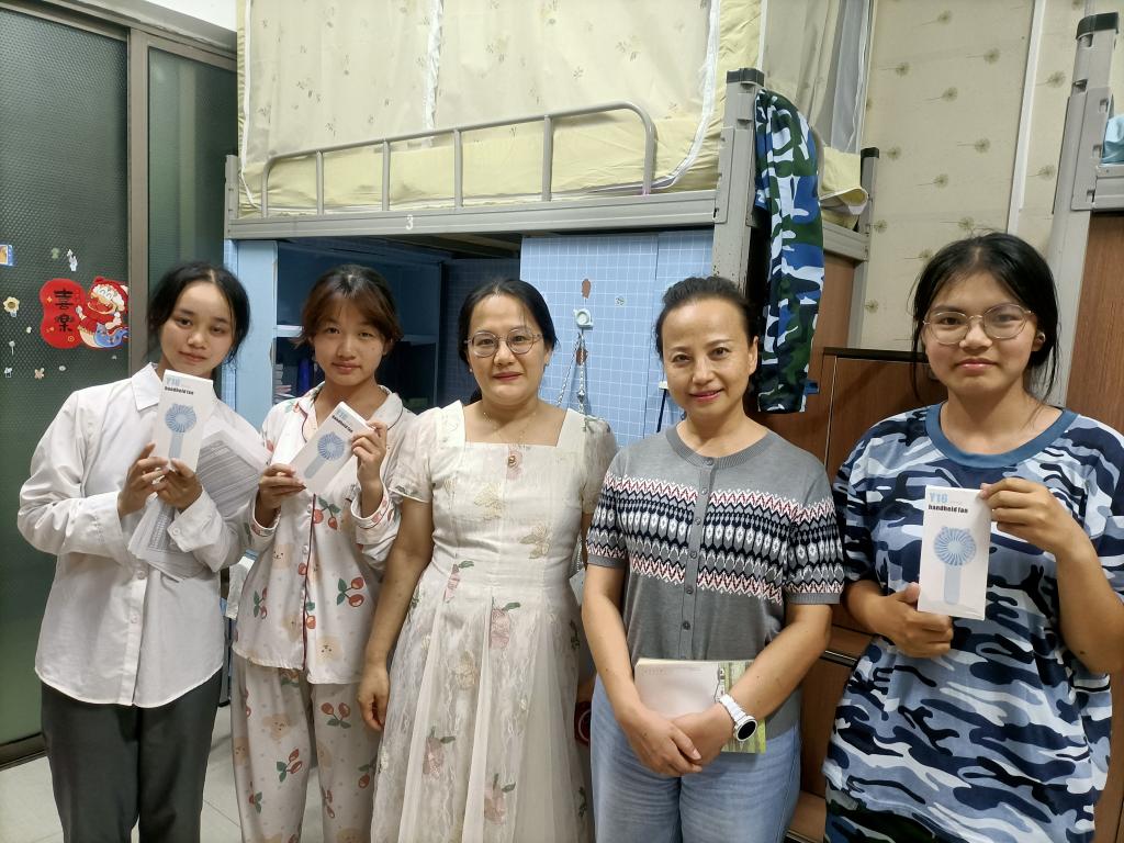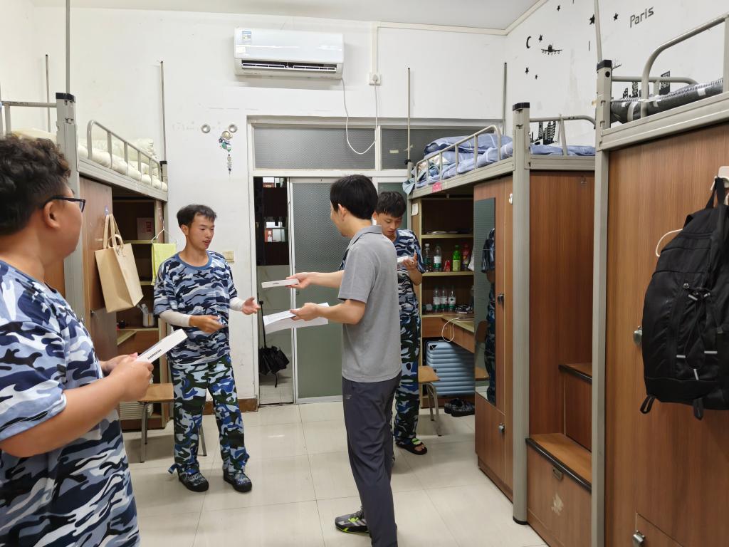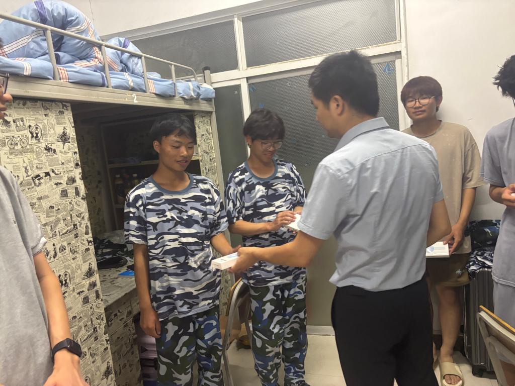 走访中,袁泽利及老师们通过与学生拉家常、说军训、谈专业、话未来等途径,不停拉近与学生的距离,还为同学们发放防暑降温小礼品,使学生切身感受到学院的关心关怀和家的温馨。