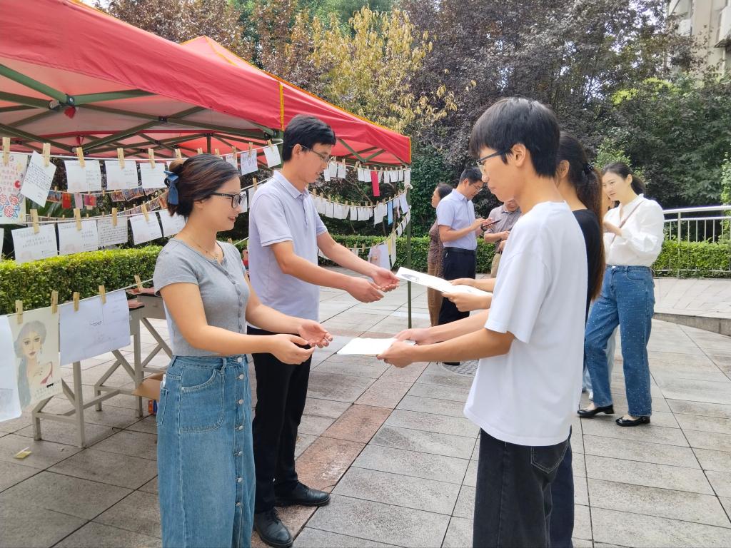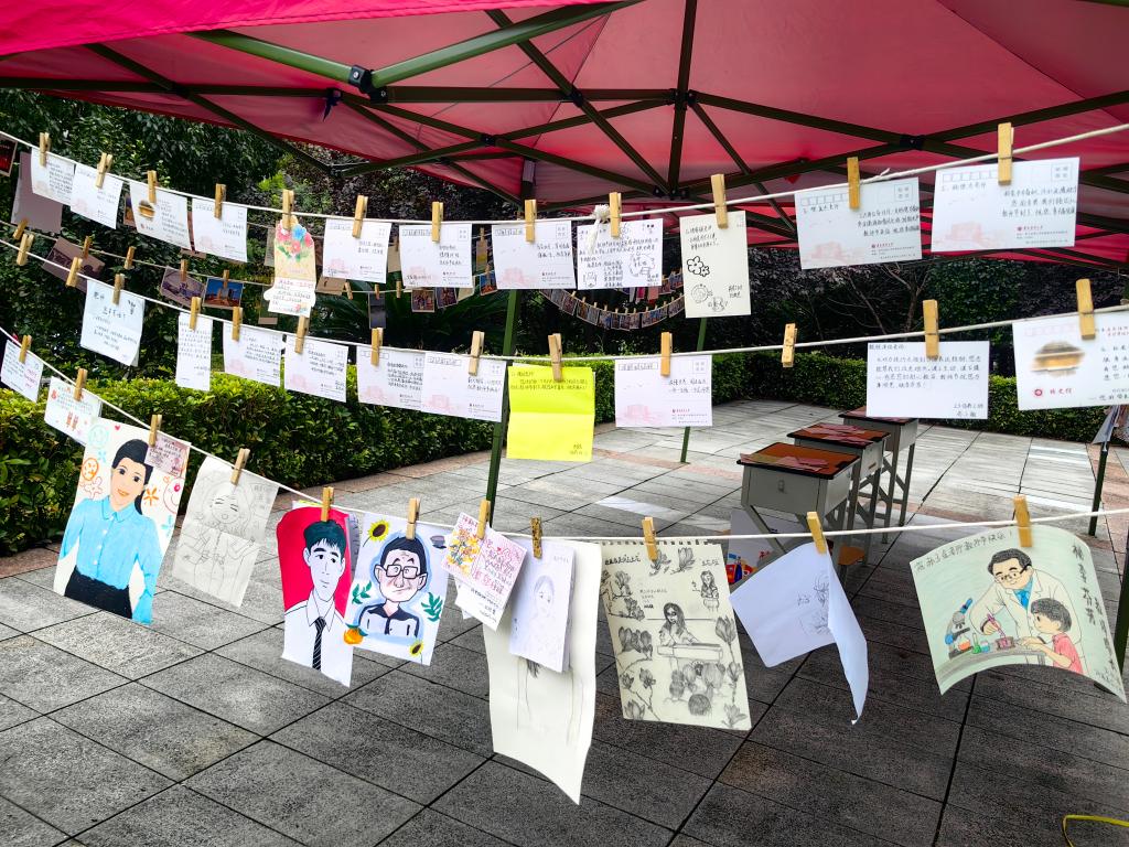 “手绘心声感师恩”——上午8时,感恩展示区就热闹起来,学院学生利用课余时间精心制作贺卡、教师自画像,一幅幅勾勒老师授课、答疑、科研等日常工作场景的细致绘图,一份份凝聚着对师长的敬爱之心的贺卡,表达了学院学生对老师的真诚祝福与感恩话语。