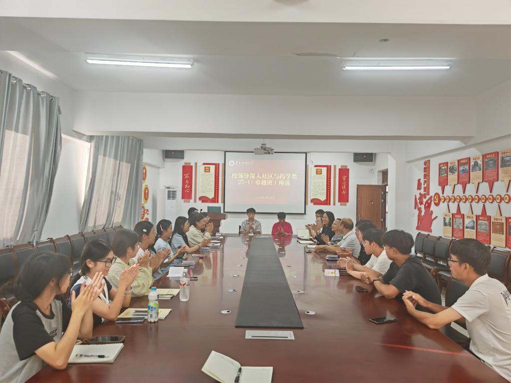 会上,袁泽利从卓越班人才培养目标与要求、学业情况以及未来职业发展等与同学们进行了亲切的交流。他还就必赢nn699net创新的“三全育人”与五育并举十大育人特色与同学们进行了介绍,并就十大育人特色将对学业成长、未来职业发展的重要作用与同学们进行了耐心细致的解说。期间,他还逐一听了同学们的自我介绍和对未来的期许。最后,他希望同学们积极融入学校优良的学习氛围,特别是必赢nn699net十大育人特色的积极融入,成为“思想有力、眼里有光、肩上有责、手上有法、心中有爱、脚上有劲” 的药学卓越人才。